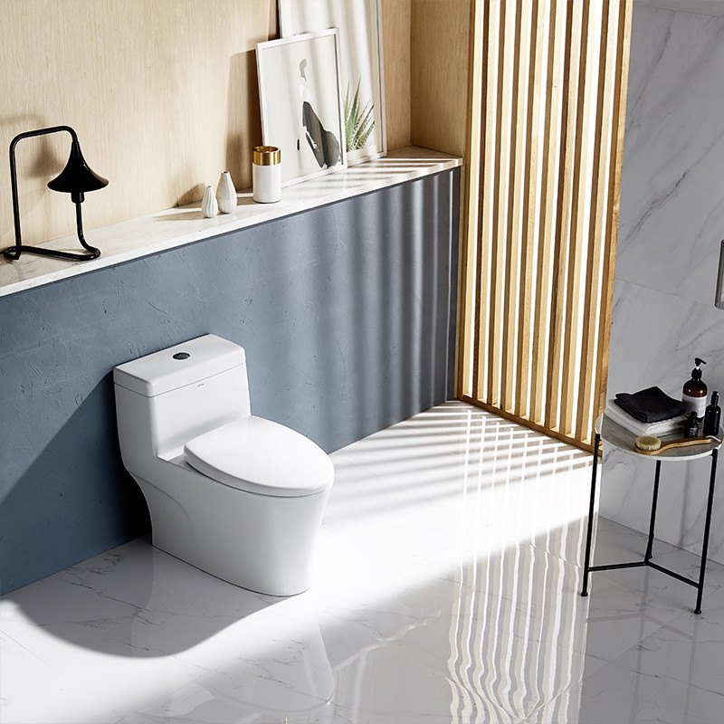 Desain toilet one-piece yang mulus dengan trapway tersembunyi di sisinya yang halus adalah keduanya