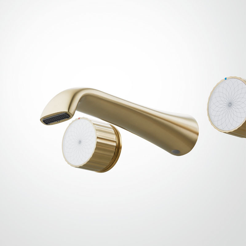 ARROW Wall Hung Baskom Mixer Keran Air Panas Dingin Knob Kontrol Faucet Emas