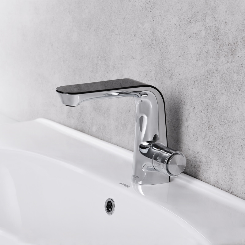 Arrow Basin MixerAir Panas DinginRuang Mandi Keran Kuningan Hitam Mat